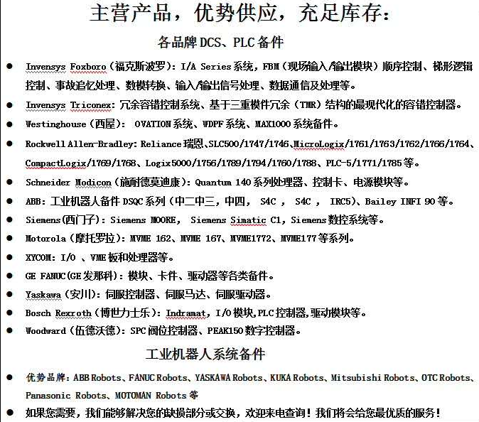 主營:世界知名品牌的PLC、DCS系統(tǒng)備件模塊